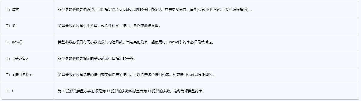 通过泛型类可以创建独立于类型的类,泛型方法创建出独立于类型的方法。接口、结构、委托也可以用泛型的方式创建。建议如果我们需要设计和类型无关的对象时,可以使用泛型,把锅甩给调用方,由上端决定实例化具体什么类型。