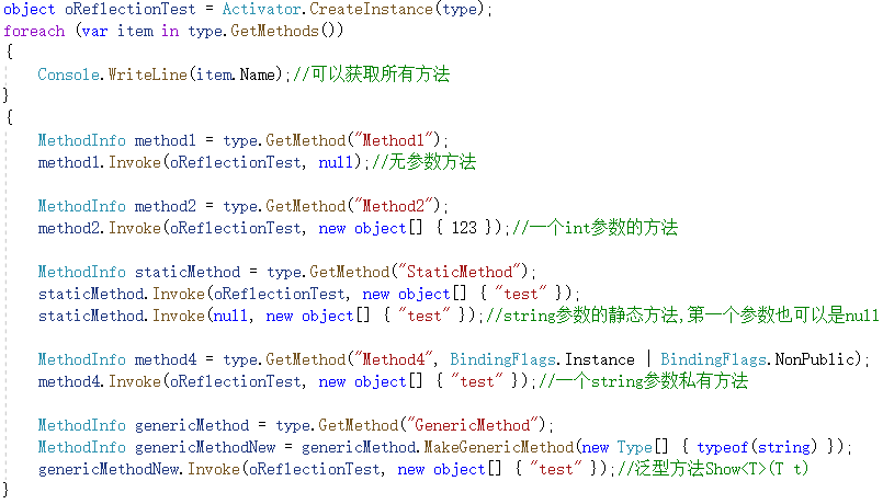 字段和属性的获取也类似。通过GetFields、GetProperties获取。