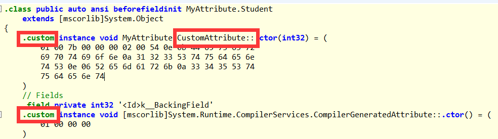 编码时标记的特性,不去调用,只直观的看,是没有什么意思的。通过反编译工具ILSpy查看IL代码,会发现在每个加了特性的元素(类、属性、方法等)处会生成特性类型的构造函数。既然在IL中存在构造函数,那我们就可以通过反射直接创建类实例。