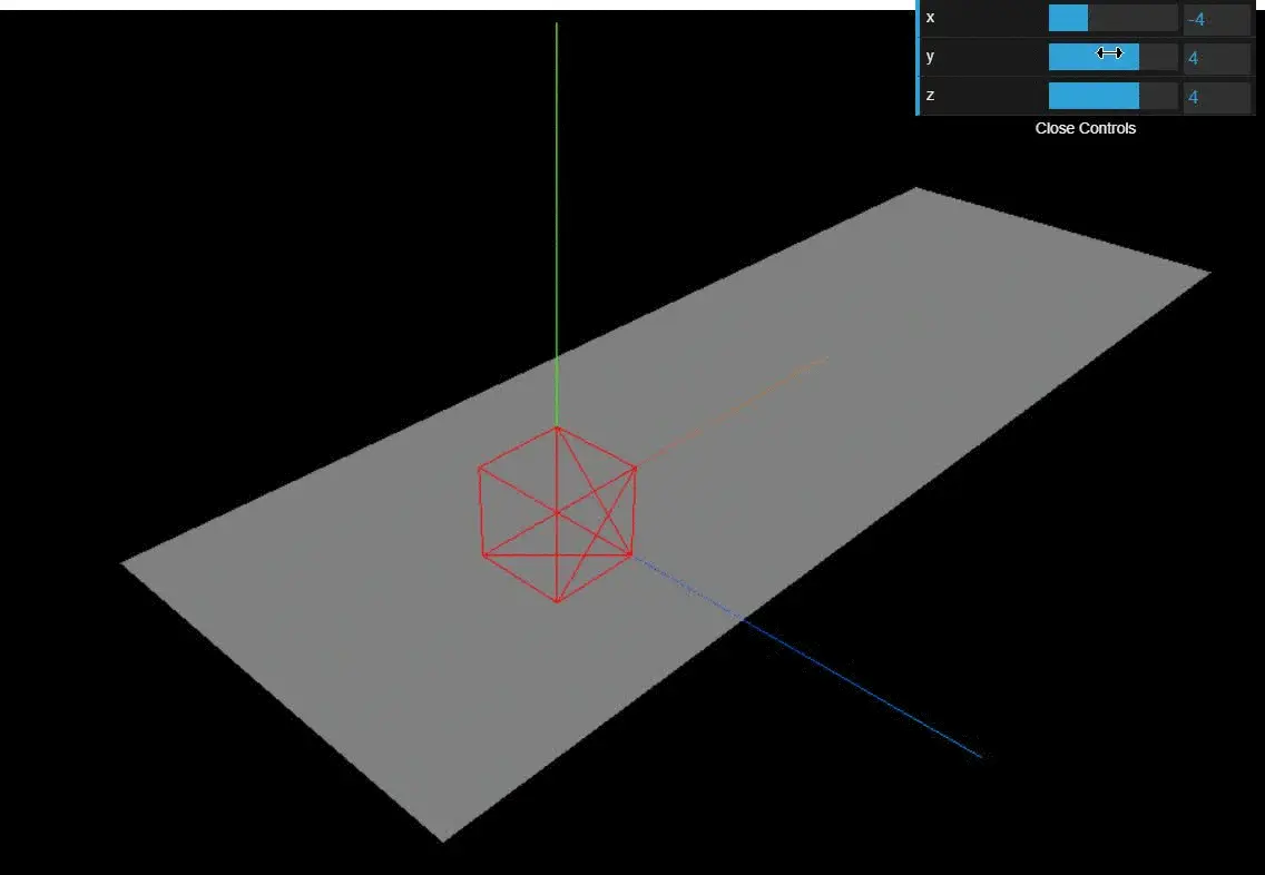 最后再引入一个全局都会使用到的一个辅助工具, dat.gui, 可以很方便的使用GUI的方式控制某些参数., 下面的参数就是用于控制cube的坐标位置