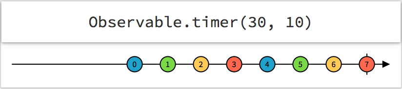 let observable = Observable<Int>.timer(DispatchTimeInterval.seconds(1), period: DispatchTimeInterval.seconds(3), scheduler: MainScheduler())