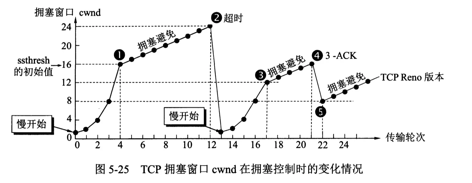 慢开始不可能让拥塞窗口无限的增长下去,因此设置一个慢开始门限(ssthresh)。 当慢开始算法执行到门限时,改用拥塞避免算法。 每经过一个RTT,就让窗口加1,这时拥塞窗口的增长是线性的。 当网络中出现超时的情况,判断网络中出现了拥塞,将ssthresh调整为当前拥塞窗口的一半。之后启用慢开始算法。