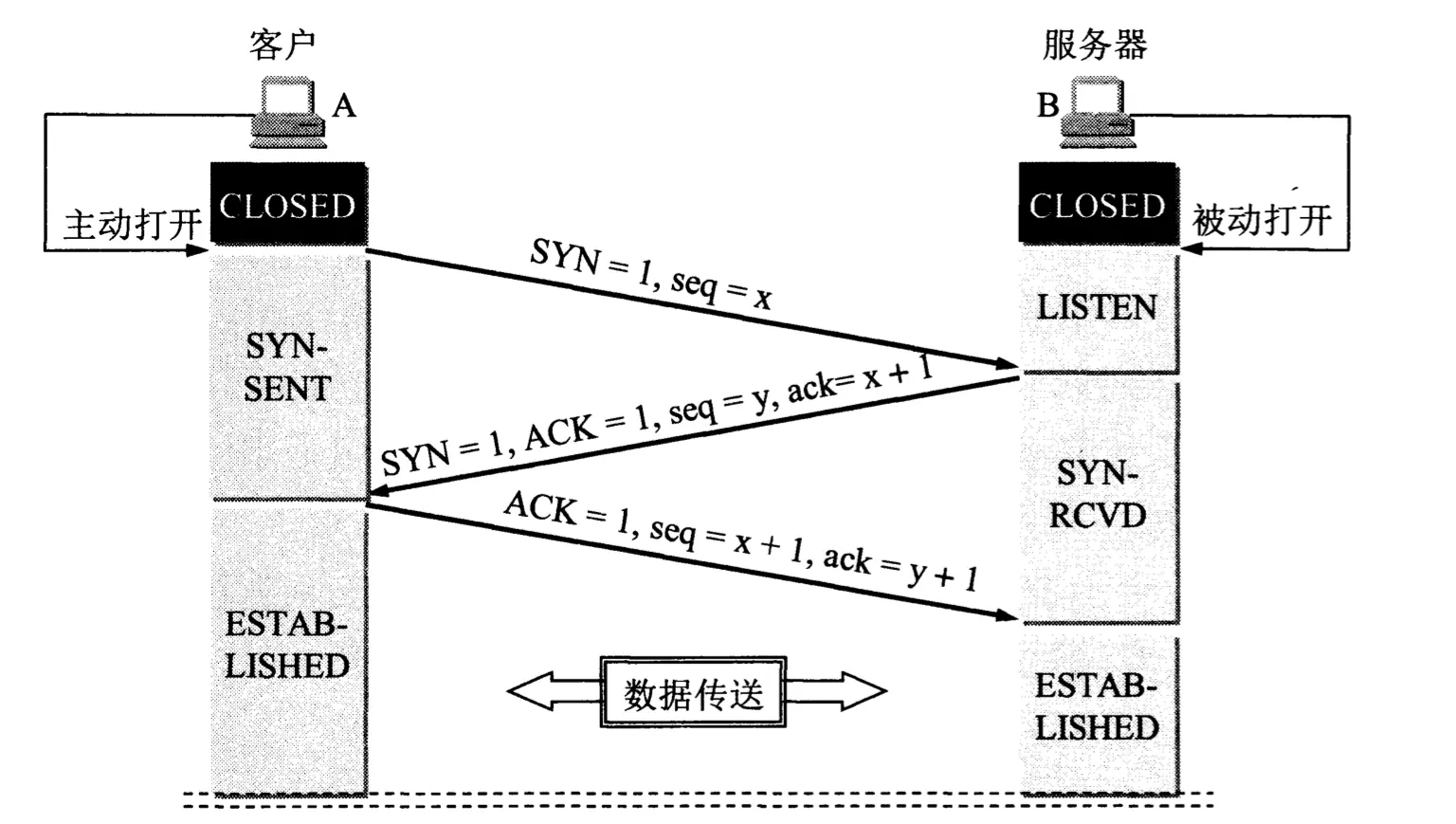 这时客户端可能是用户在浏览器点击了某个链接,主动打开了TCP的连接,向目的客户端发送一个请求建立连接的TCP报文段。