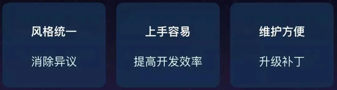 考虑授人以鱼不如授人以渔嘛,我们先分享下我们的设计理念,这是最简单却也最重要的开始部分,我们的目标是风格统一、上手容易、维护方便: