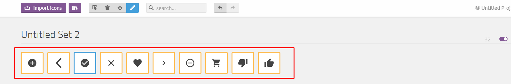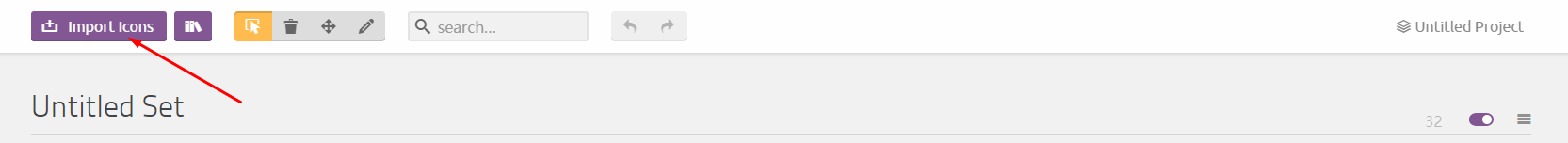3. 点击左上角的import icons导入本地的svg文件(也可以直接选择该网站现有的svg)