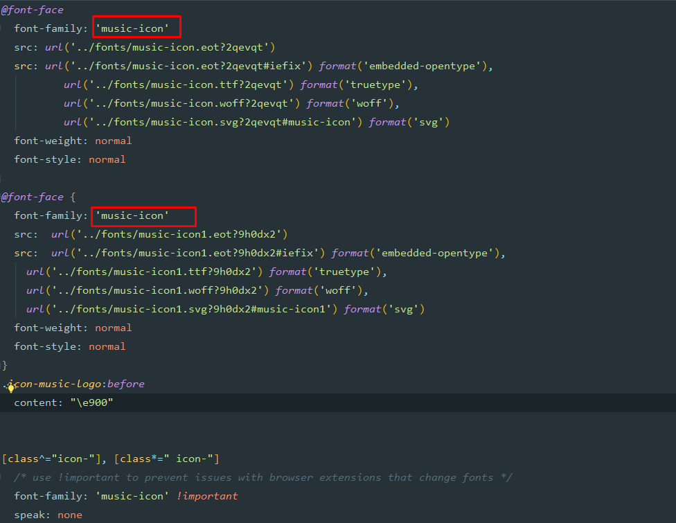 现在你去引用新的字体图标(icon-music-logo)会发现生效了!!!