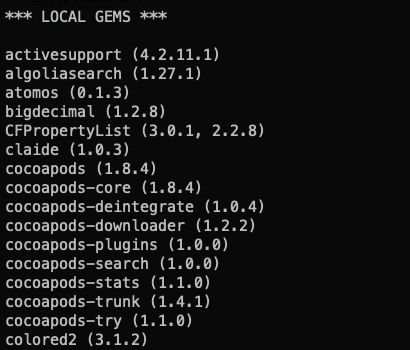 查看pods的版本 gem list