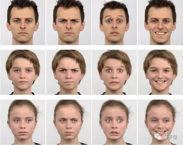 如图所示,RaFD数据集上的图像转换结果,从左到右依次为:输入、愤怒、惊恐、开心(后三个为算法生成结果)。