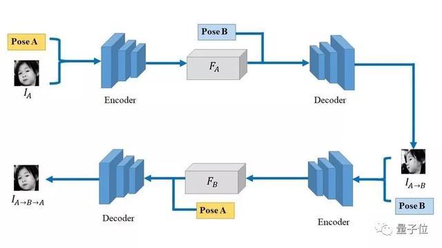 除了合成视图与监督信息之间的损失函数之外,本文提出使用一种基于循环生成的重建损失函数,来提升合成视图的准确性;同时借鉴目前的对抗生成技术,从图像本身的生成分布,与图像的姿态准确性保证两方面出发,提出两个不同作用的对抗学习损失,以提升生成图像的质量和合成视图的姿态准确度。