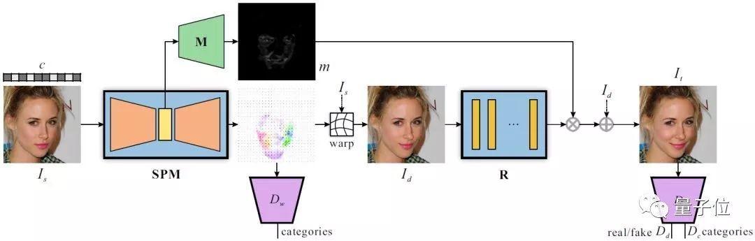 本文提出的自光流模块,通过输入原图像和目标属性,自光流域模块旨在预测光流,并利用光流对原图像采用变形操作得到中间结果图像。