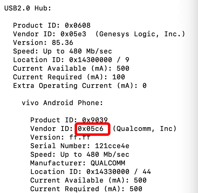 可以看到设备信息,将设备信息中的vendorID保存下来