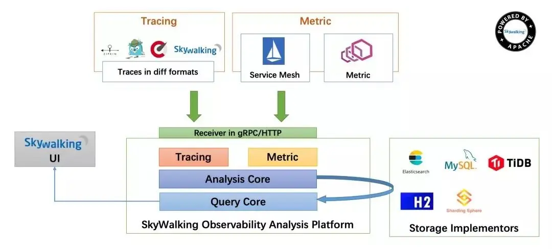 SkyWalking 支持多种来源和多种格式的 traces / metrics 数据,包括: