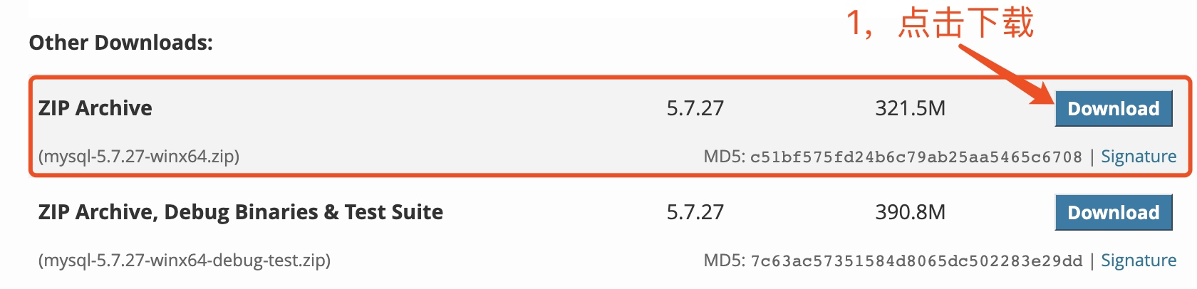 1、官网下载MySQL5.7.27.zip 压缩文件