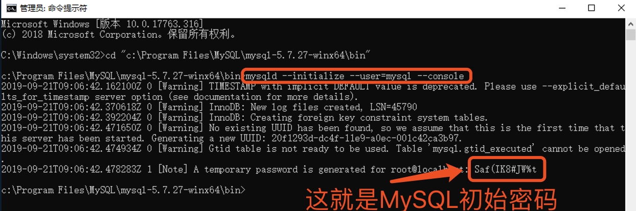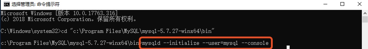 1、输入mysqld --initialize --user=mysql --console时出现: