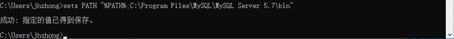 setx PATH "%PATH%";C:\Program Files\MySQL\MySQL Server 5.7\bin