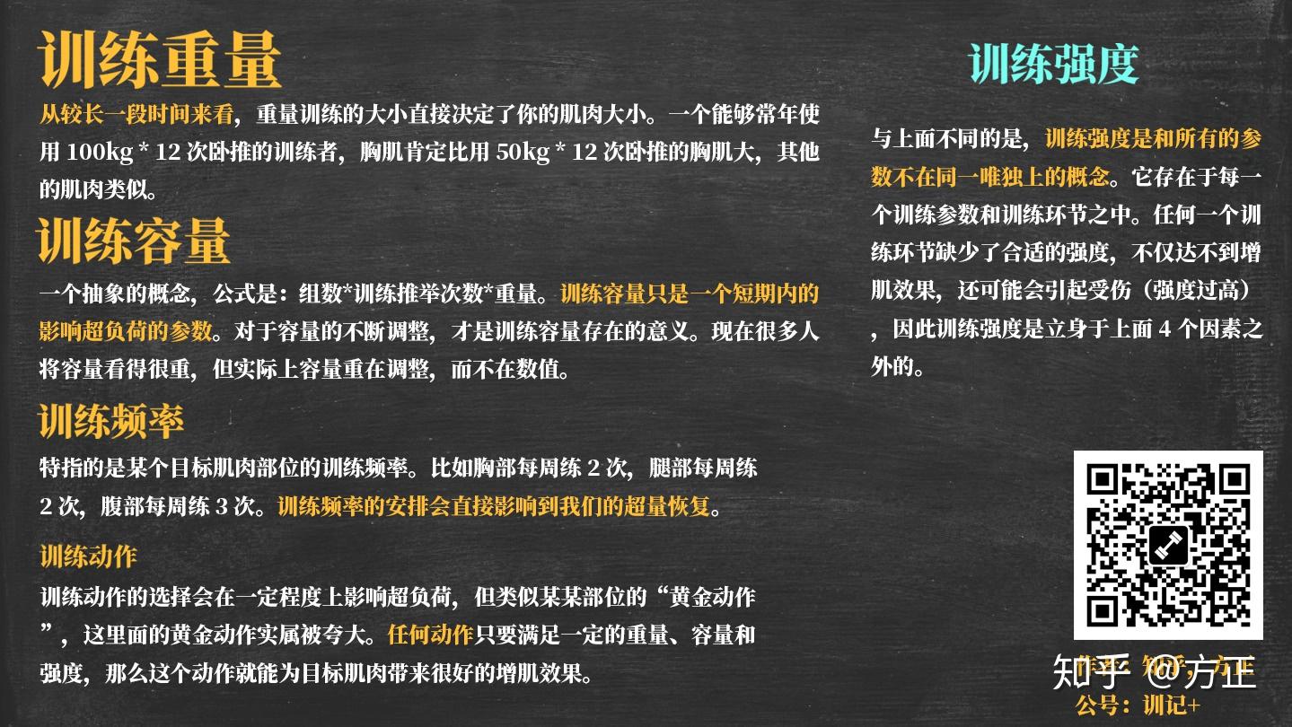 - 训练动作:训练动作的选择会在一定程度上影响超负荷,但类似某某部位的“黄金动作”,这里面的黄金动作实属被夸大。任何动作只要满足一定的重量、容量和强度,那么这个动作就能为目标肌肉带来很好的增肌效果。