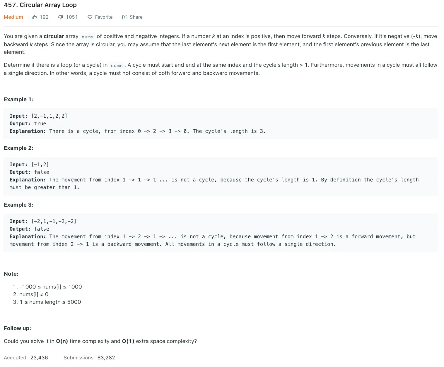 - 判断是否有circle,可以使用fast和slow双指针,也可以标记走过的脚印,考虑到“注意事项”中第二点,此处标记脚印时间复杂度会更少 link