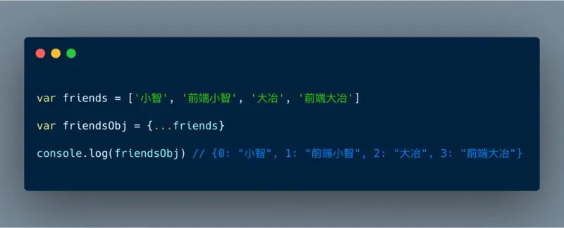 有时候,出于某种目的,需要将数组转化成对象,一个简单快速的方法是就使用展开运算符号(...):