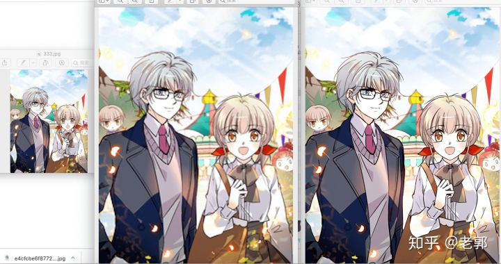 我准备了两张图片,分别是动漫图和人物照片。然后会将这两张图片通过工具放大,将得到的图片与手动编辑尺寸放大得到的图片想比较。