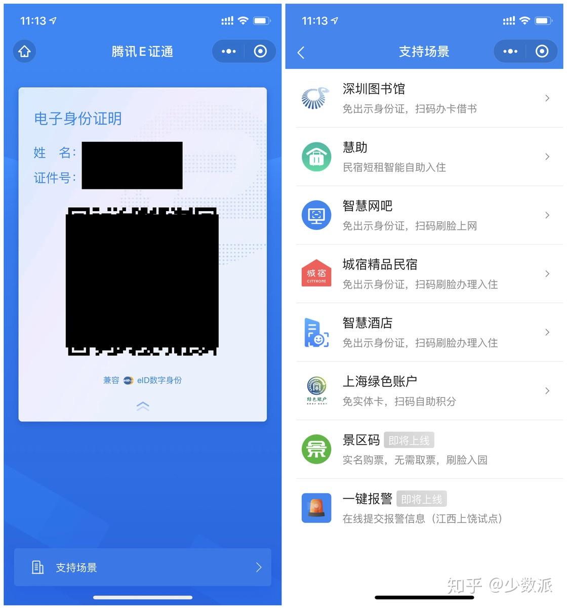 微信小程序里的腾讯E证通是 eID 作为线下居民身份凭证的另一种方式。虽然在办理政务时可能不具备法律效力,但是在生活中经常能派得上用场。根据腾讯E证通小程序里的介绍,你可以在深圳图书馆、民宿、网吧、酒吧等场所通过出示腾讯E证通中的电子身份证明来获得与实体身份证相同的效果。