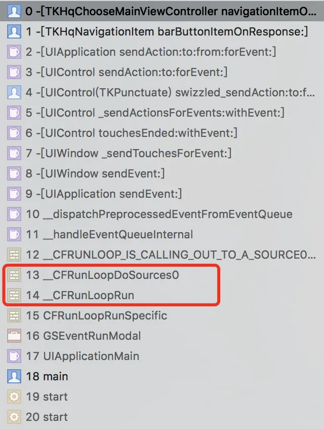 kCFRunLoopBeforeSources记录更新时间,并且记录状态为NO,用于定时器区分状态;在kCFRunLoopBeforeWaiting时将状态置为YES。 - 在定时器的执行函数里,判断如果当前状态为NO,那么表示主线程的RunLoop还在运行,计算当前时间与记录的更新时间的差值,如果大于阈值,那么将堆栈信息保存在文件中,择时上传。