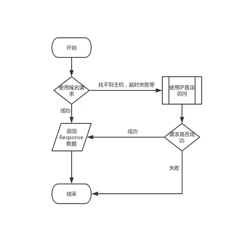 直连方案实现较为简单,当使用域名访问出现找不到主机,请求超时等异常时,直接切换至IP地址重试请求;且App在下次启动之前,一直使用该IP进行网络请求。