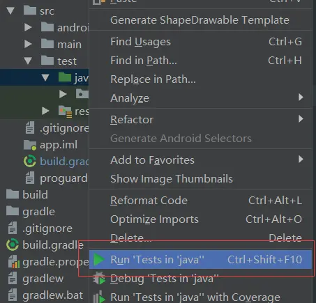 Android Studio创建的工程会自动集成JUnit,在build.gradle中添加相关依赖: