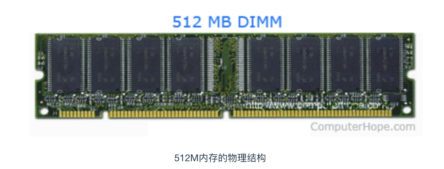 如果我们使用的是 512 MB 的内存,这就相当于是 512000(512 * 1000) 个内存 IC。当然,一台计算机不太可能有这么多个内存 IC ,然而,通常情况下,一个内存 IC 会有更多的引脚,也就能存储更多数据。