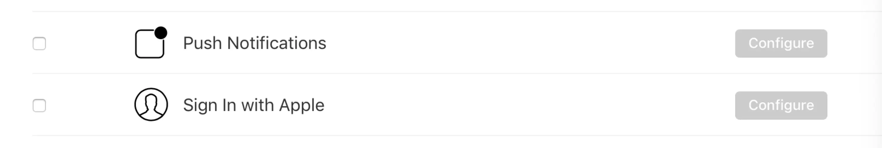 App Store Connect创建新App 套装ID不显示问题 夜月韩 2019-10-28 5,570 阅读1分钟 我们在App Store Connect创建新App时,有时会遇到套餐ID不显示,创建完的Identifiers(对应App ID)不显示的问题。这个时候我们可以排查一下是否对应的Identifier(对应App ID)选择了需要配置(Configure)相应的Capabilities,如下图所示。 我们需要完成相应的配置以后,套装ID才会正常显示,变为可选择