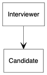 关联可以是单向或双向的,以线形箭头表示,无箭头也表示双向关联。以下展示单向关联,面试官知道他对应的候选人,但候选人不知道面试官: