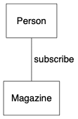 UML 中的关联(association)描述两个类的关系,以类之间的实线表示。例如人和杂志的关系是订阅: