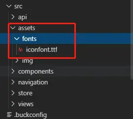 rnpm我不是很懂,如果有懂得能否教我一下为什么是rnpm吗?感谢。),字体图标首先需要创建文件夹,一般为./src/assets/fonts,当然这不是一定的,主要看心情。然后在 Iconfont 中创建项目,选择字体图标,下载图标,复制.tff文件放在刚刚创建的文件夹中,如下: