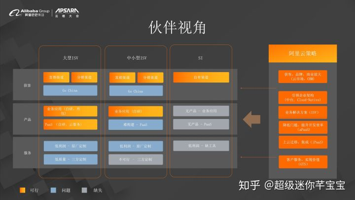 对于这三件事情,不同的合作伙伴可能要思考或者要做的事情有点不太一样。举例来说,对于大型的ISV他们可能从产品构建的角度来说,他们自己没有太多的问题。但是从服务的角度上面来讲,他们会面临一些挑战。