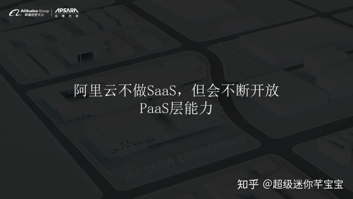 我们不敢做的一个原因是,我们不敢在每个业务领域里面充当这个业务领域的专家。做事情都要有边界,从阿里云的角度来讲,3月份我们提出来阿里云不做SaaS,坚持被集成的战略,把SaaS的空间给到我们的合作伙伴,这就是我们对阿里云能做什么、不能做什么的一个深刻的思考和一个清晰的反馈,希望能够和伙伴合作共赢,共同创造中国企业服务巨大的市场空间。
