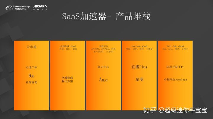 这些是我们对SaaS加速器整个产品的设计和考虑,我们不做SaaS,除了开放商业平台之外,不断会开放Pass侧的能力,帮助伙伴来去做好SaaS,也会帮助企业用好SaaS。
