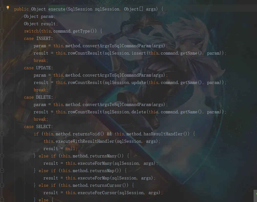 跟进这个mapperMethod.execute(this.sqlSession, args)方法