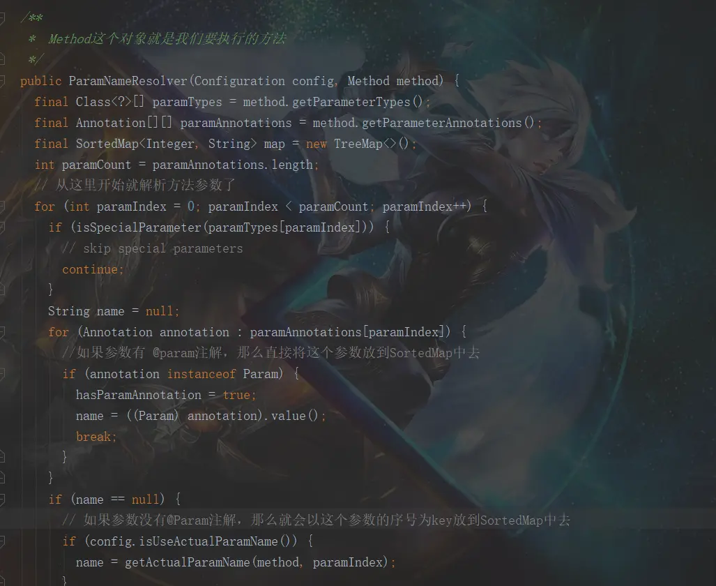 如果我们参数有@param注解,那么解析出来的结构就是{"id":1,"name":'123'},如果没有@Param注解那么解析出来的就是{arg0:1,arg1:'123'},因为id的序号是0嘛,所以就是arg0,name的序号是1,所以就是arg1。