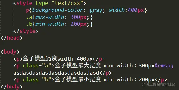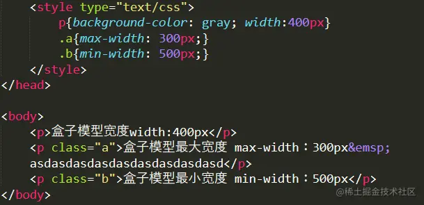 由于max-width限制了第二段的最大宽度,只能接受比他小的值,所以对整个<p>标签400px的宽度设置,对他不起作用。