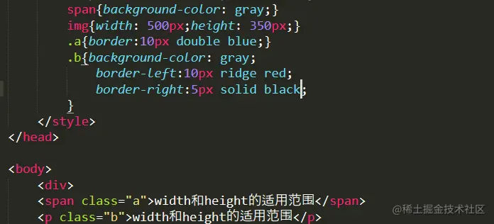 - 块级元素(div)以及使用display:block设置成块级元素的元素width/height/margin/padding都生效。