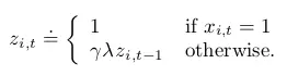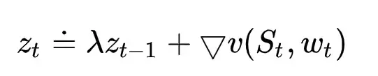 TD(λ) eligibility trace Z_t 一直在追踪那些对『recent state valuation』有贡献的权重分量==它来表示之前的状态对于达到当前状态的作用