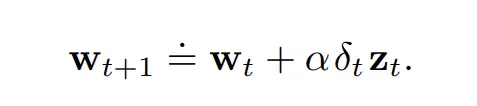 状态值函数估计 这个eligibility trace 结合 半梯度更新即为一般的 TD(λ) 算法