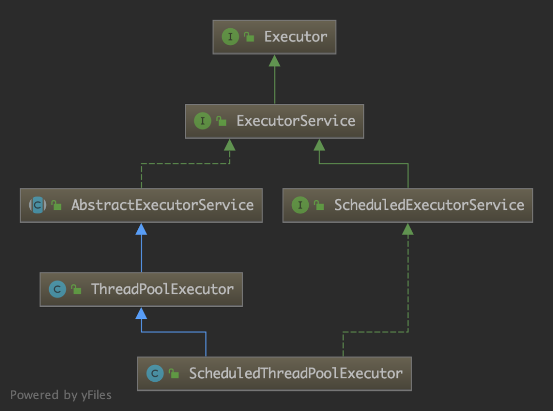 public class ScheduledThreadPoolExecutor extends ThreadPoolExecutor implements ScheduledExecutorService {}