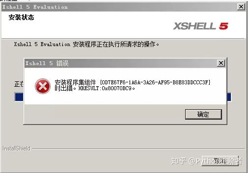 部分小伙伴在安装Xshell的时候可能会遇到这个问题:“Xshell5安装程序集组件{0D7E67F6-1A6A-3A26-AF95-B8E83DDCCC3F}时出错。HRESULT0x80070BC9”,导致安装被强制退出,如下图所示。