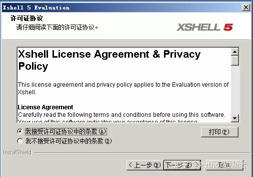 等Xshell下载完成之后,便可以进行安装了,其具体安装过程如下,这里以Xshell5的安装进行示例,Xshell6的安装可以按图索骥。
