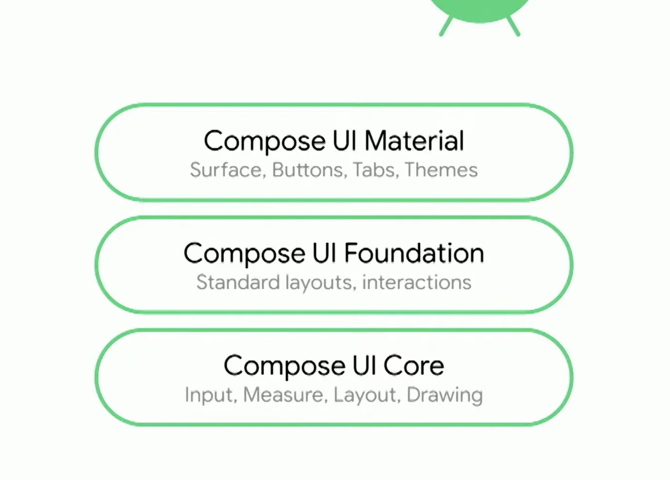- Compose UI Foundatuin 提供了标准布局以及交互的定义