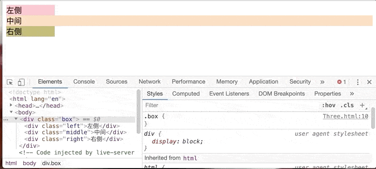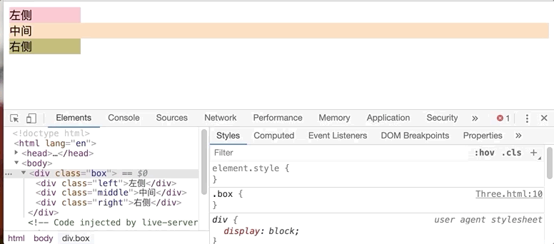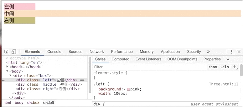 1. 假设高度已知,请写出三栏布局,其中左栏、右栏宽度各位100px,中间自适应
