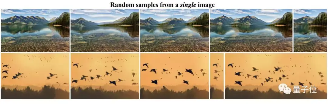 SinGAN只用一张图片训练,便可以捕捉图像中,各种图像块的内部分布 (internal distribution of patches) 。训练后,就能生成高质量、多样化的样本,但与原图带有相同的视觉内容: