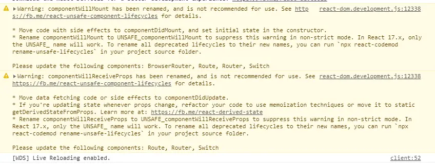 这里特别说明下:react版本问题,如果你安装的React是16.9以上版本,那么在你打开控制台的时候会出现以下警告: