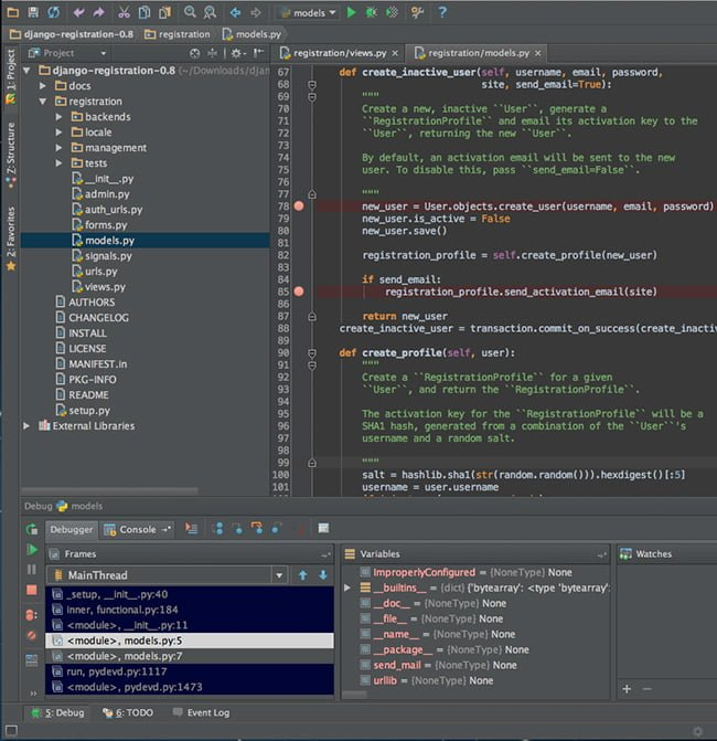 1、针对 Django 开发的高级支持,包括智能代码完成、检查、重构和特定代码导航。