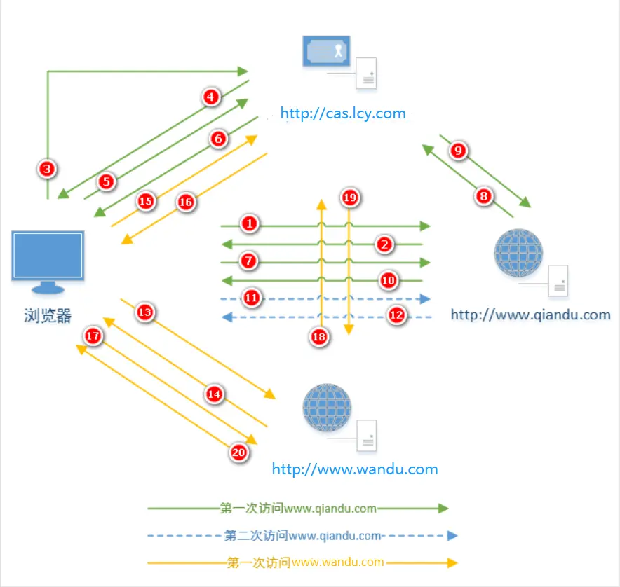 我们用术语翻译一下整个过程,也就是要介绍的基于第二种原理来实现的单点登录的方式。